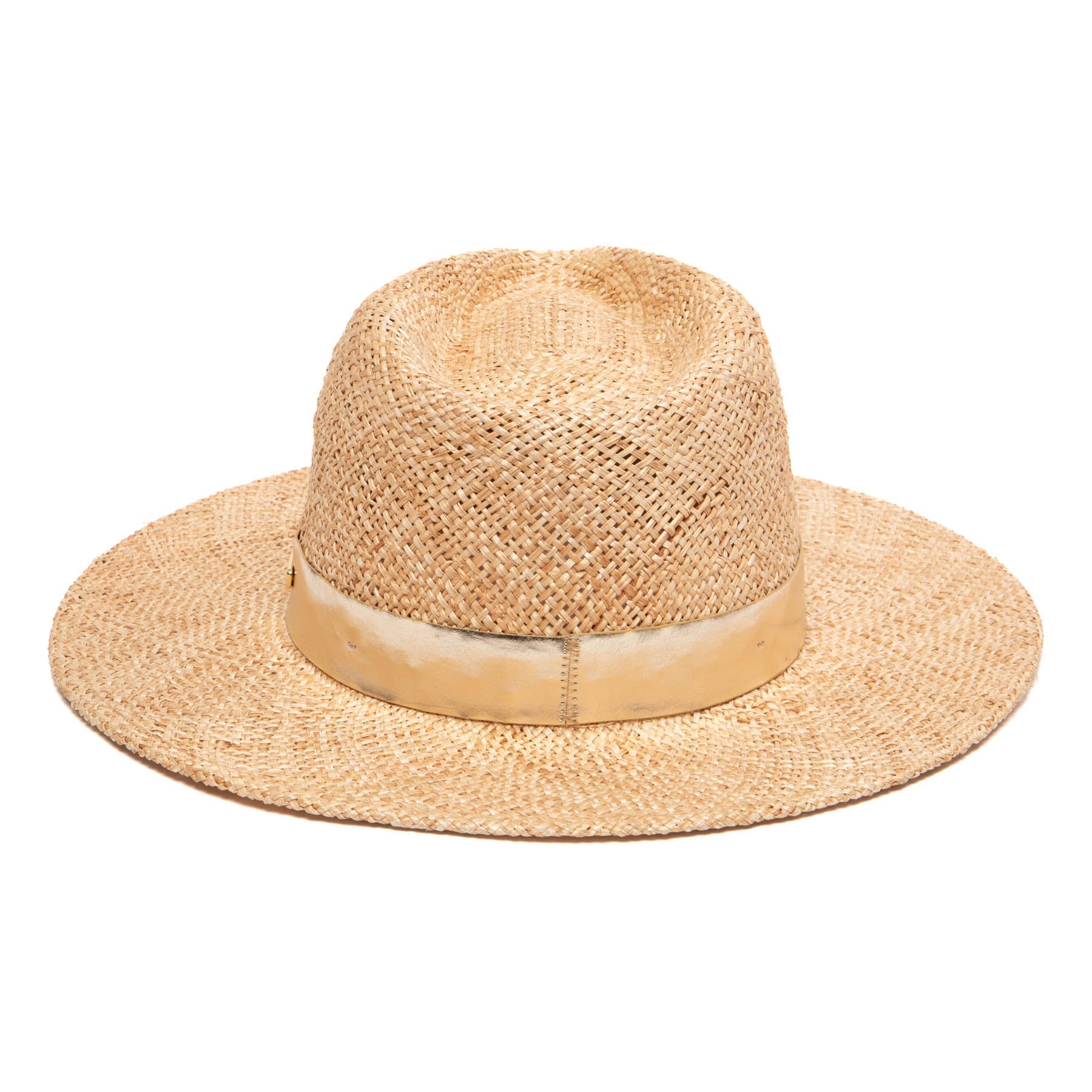 Indulge in the luxurious Kyle Fedora by Trina Turk (TRT1026). This woven sisal fedora boasts a gold vegan leather band and polished metal logo plaque for a sophisticated touch. The 3.25" brim offers both style and sun protection. Made from 100% Sisal Straw, this adjustable fedora is a must-have for any fashion-forward individual.