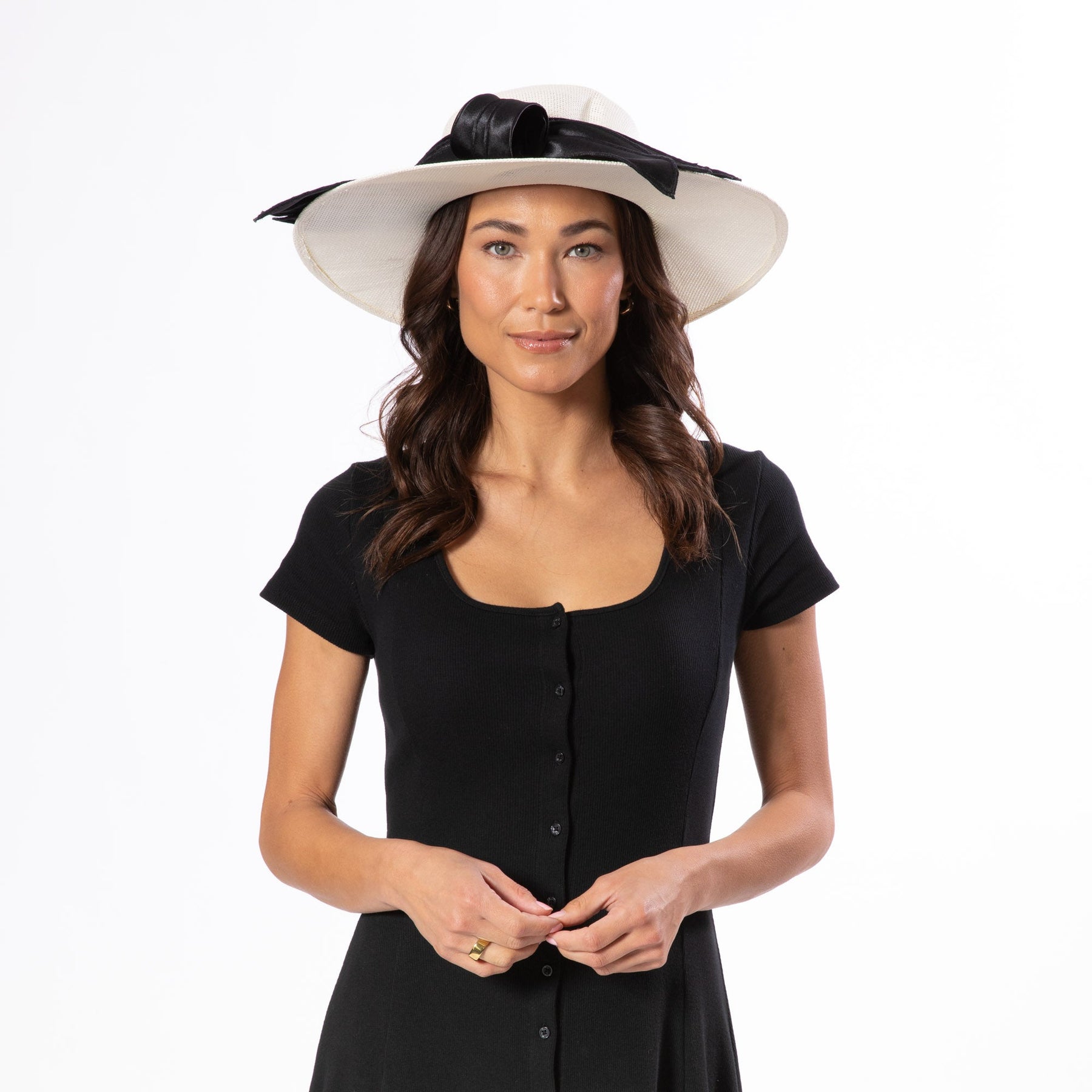 DRS1056 - WOVEN PAPER ROUND CROWN WITH EXAGGERATED SATIN BOW